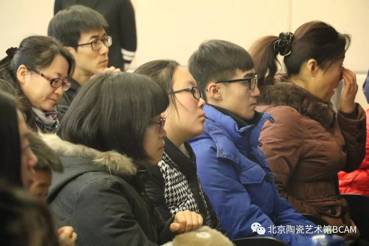 张教授以自身从事陶瓷事业的经历为轴,分享了我国几十年来陶瓷材料的变迁以及陶瓷创作中对于材料的要求。釉料作为陶艺制作的重要材料,一般都是就地取材,进而造成各产地的陶瓷特色不一,各有千秋;吕晓庄教授是陶瓷材料方面的专家,她提到,釉料的同一种配方可以烧制出多种不同的花纹,配合着大屏幕上的各式各样精美的花纹,大家发出一阵阵赞叹声。张守智教授还以水、油来比喻分相釉,以此让大家更直观的了解窑变。